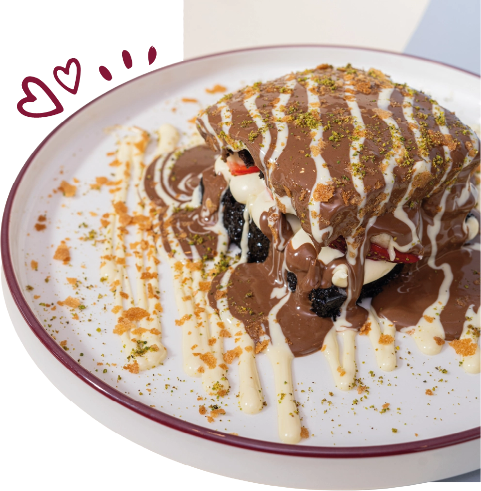 Cheesecake’in modern bir yorumu, çikolata ve meyve seçenekleriyle.